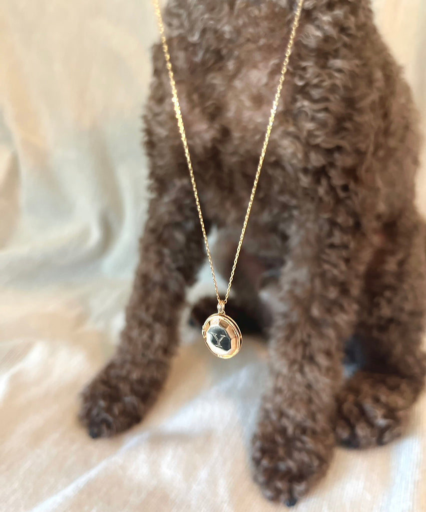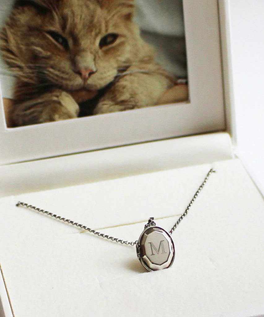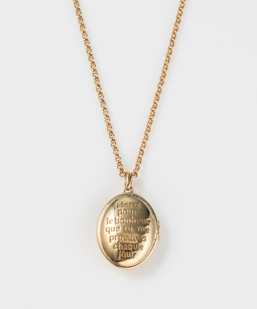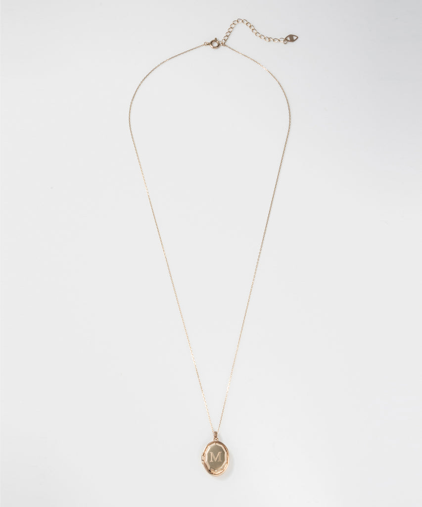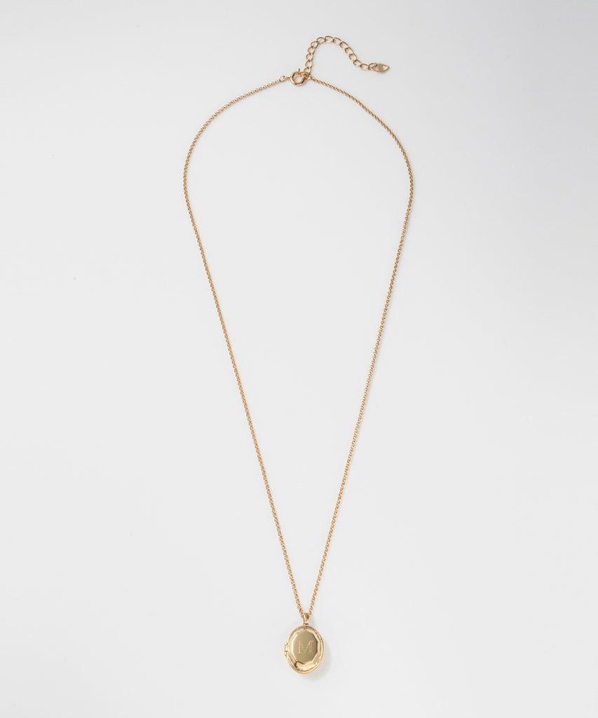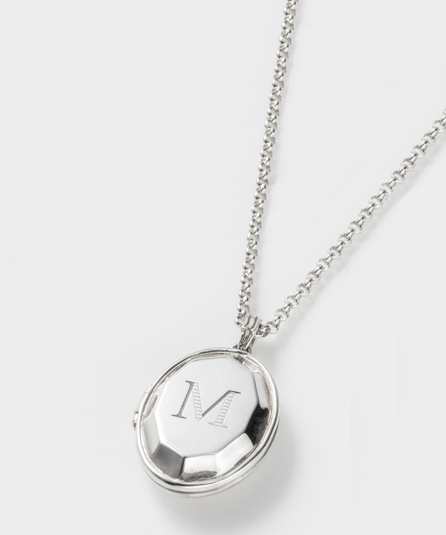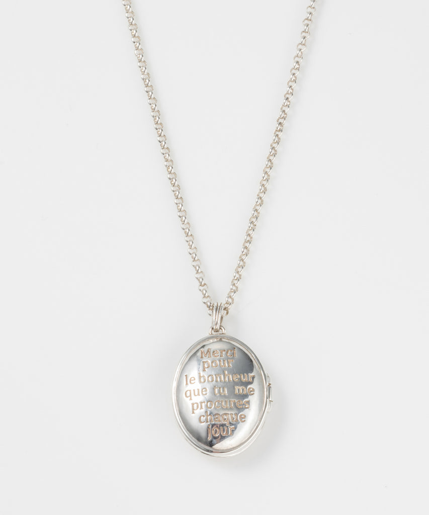 ロケットネックレスの表にイニシャルと、内側にお名前や日付を刻印できます。