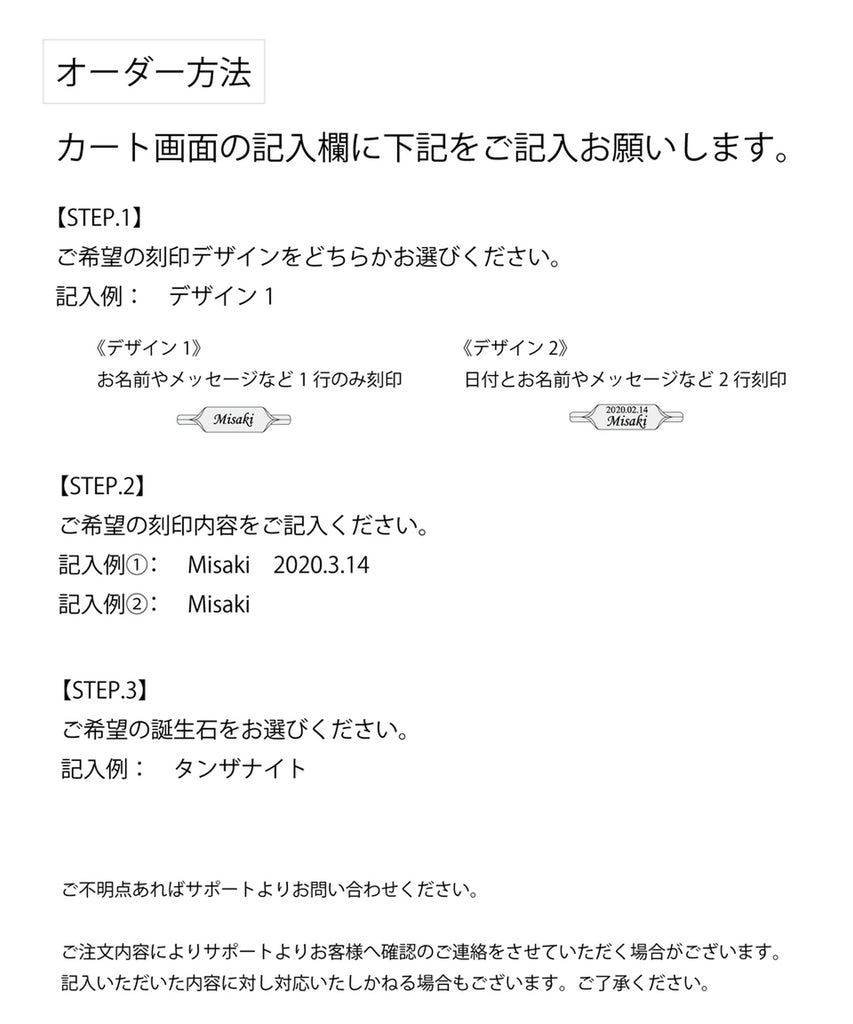ご不明点ございましたらお問い合わせください。ご注文内容によりお客様サポートからお客様へ確認のご連絡をさせていただく場合がございます。記入いただいた内容に対し、対応いたしかねる場合もございます。