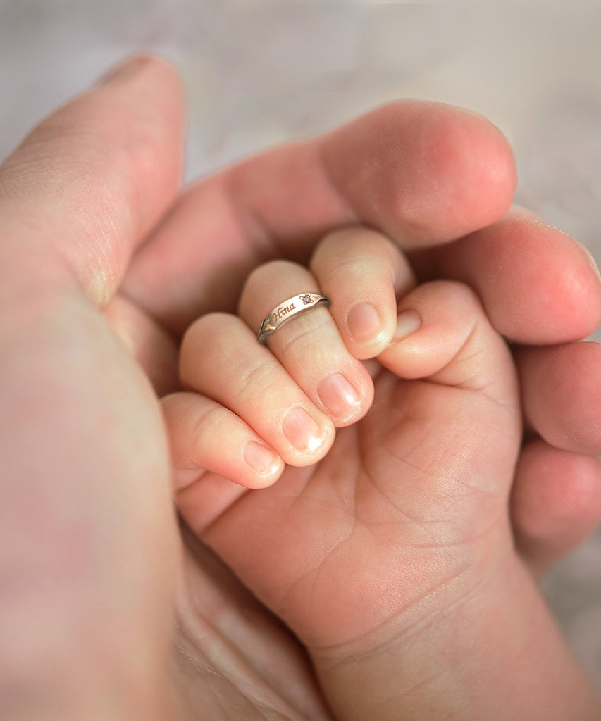 ママが出産記念にお子様の名前を刻印して身に着け、記念日にそれを贈ることで受け継ぐジュエリーとしてもお使いいただけます。