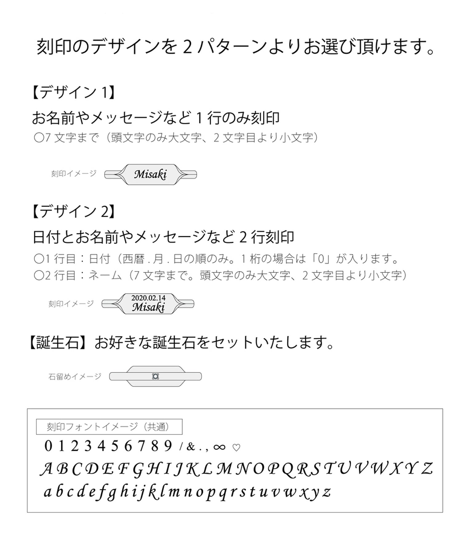 デザイン②:日付とお名前やメッセージなど2行刻印