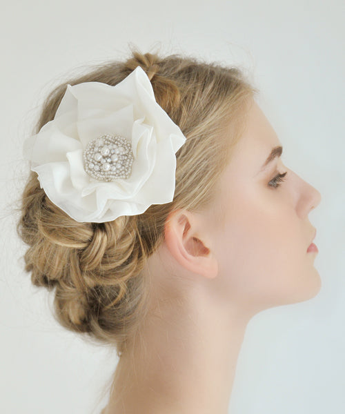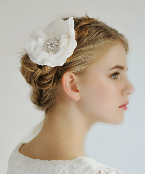 ボブスタイルや、シンプルなヘアアレンジに合わせても、リボンを取り外して後頭部に合わせてもバランスを取りやすい透け感とボリューム。
