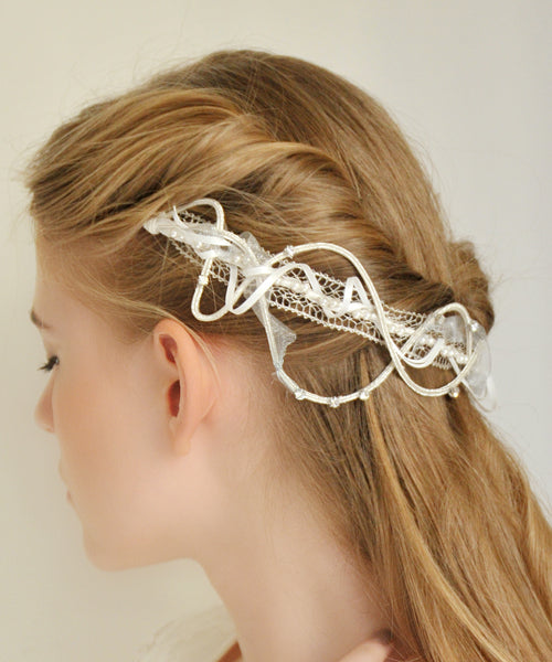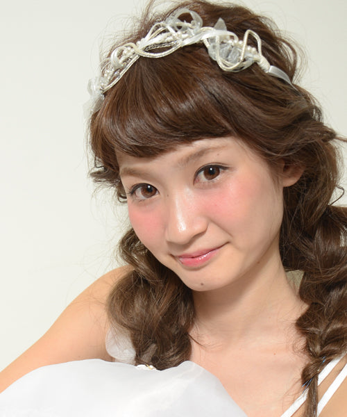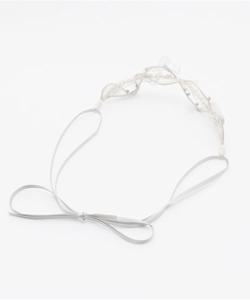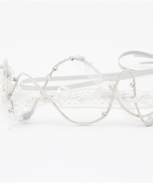 リボン・パール・クリスタルが織りなす煌めきが、結婚を祝福する音楽をイメージしたへッドドレス。