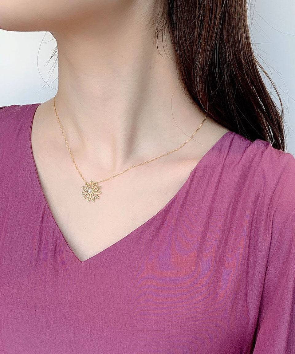 マーガレットモチーフが可愛らしいネックレス。真ん中にはパールがあしらわれワンポイントに。