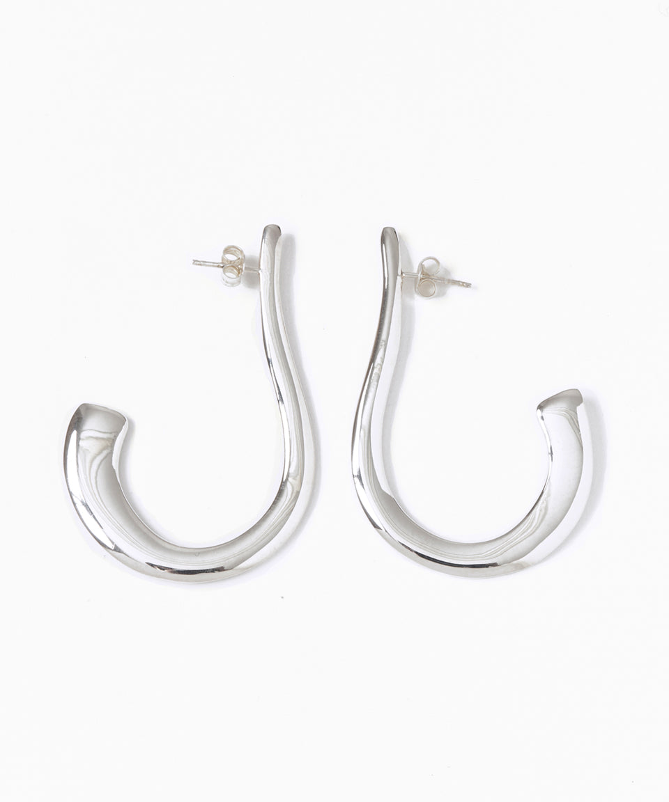 適度な厚みを持ったシルバープレートが優美でフェミニンな弧を描き、コーディネートに華やかさとエキゾチックなエッセンスをプラスしてくれます。