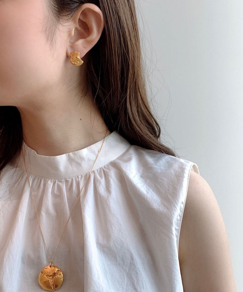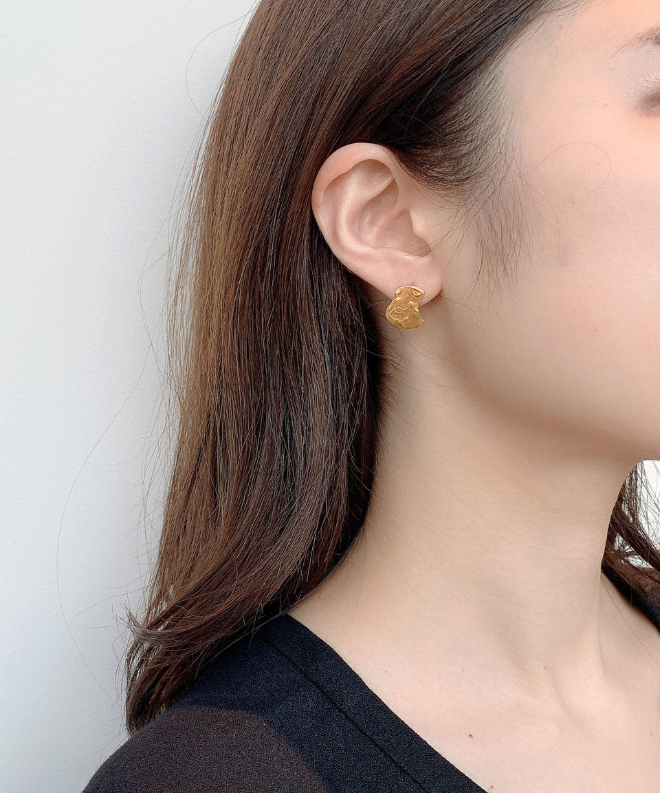 アシンメトリーのデザインが特徴的なデザインのピアスです。軽い着け心地で着用していただきやすいデザインになっています。