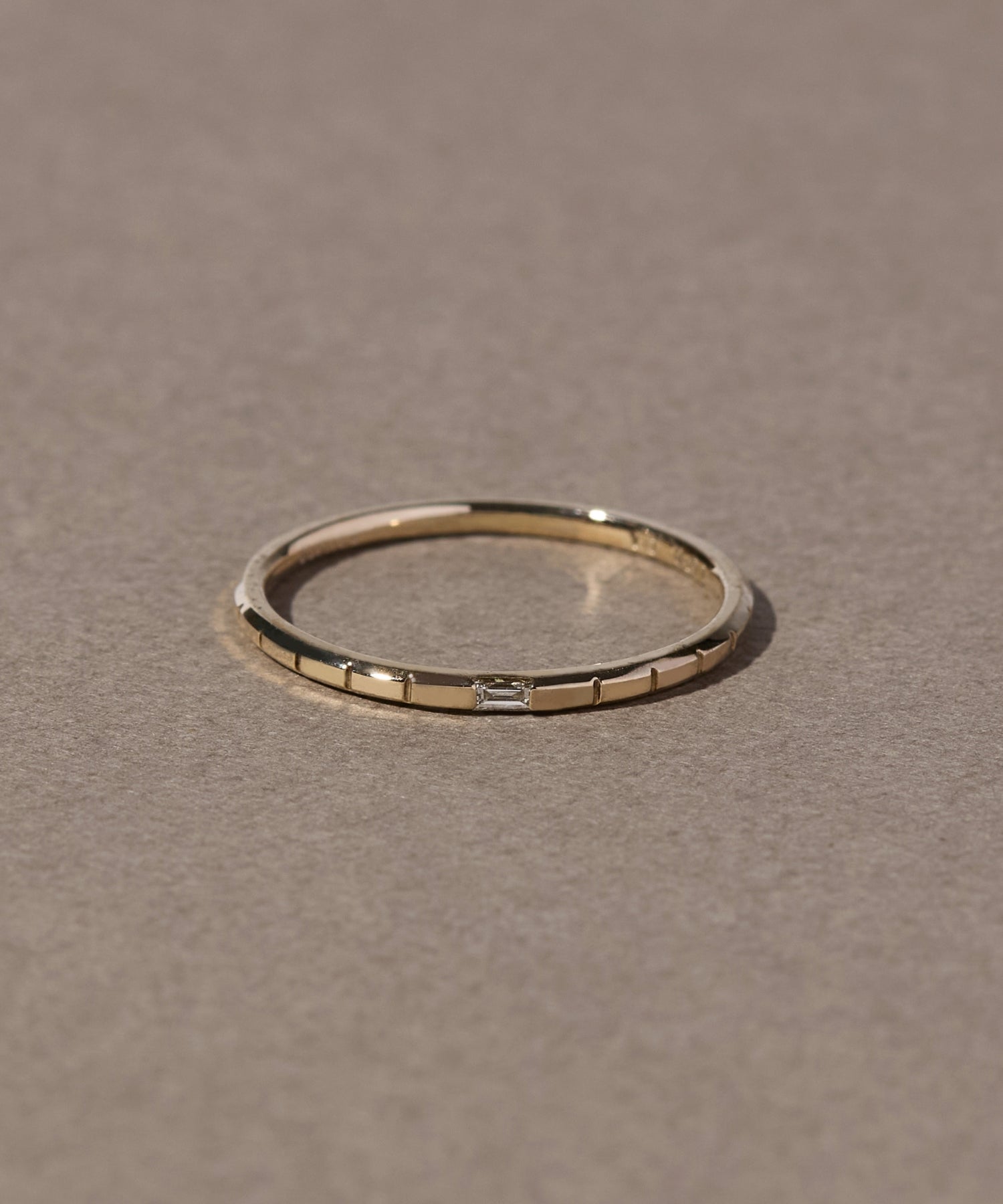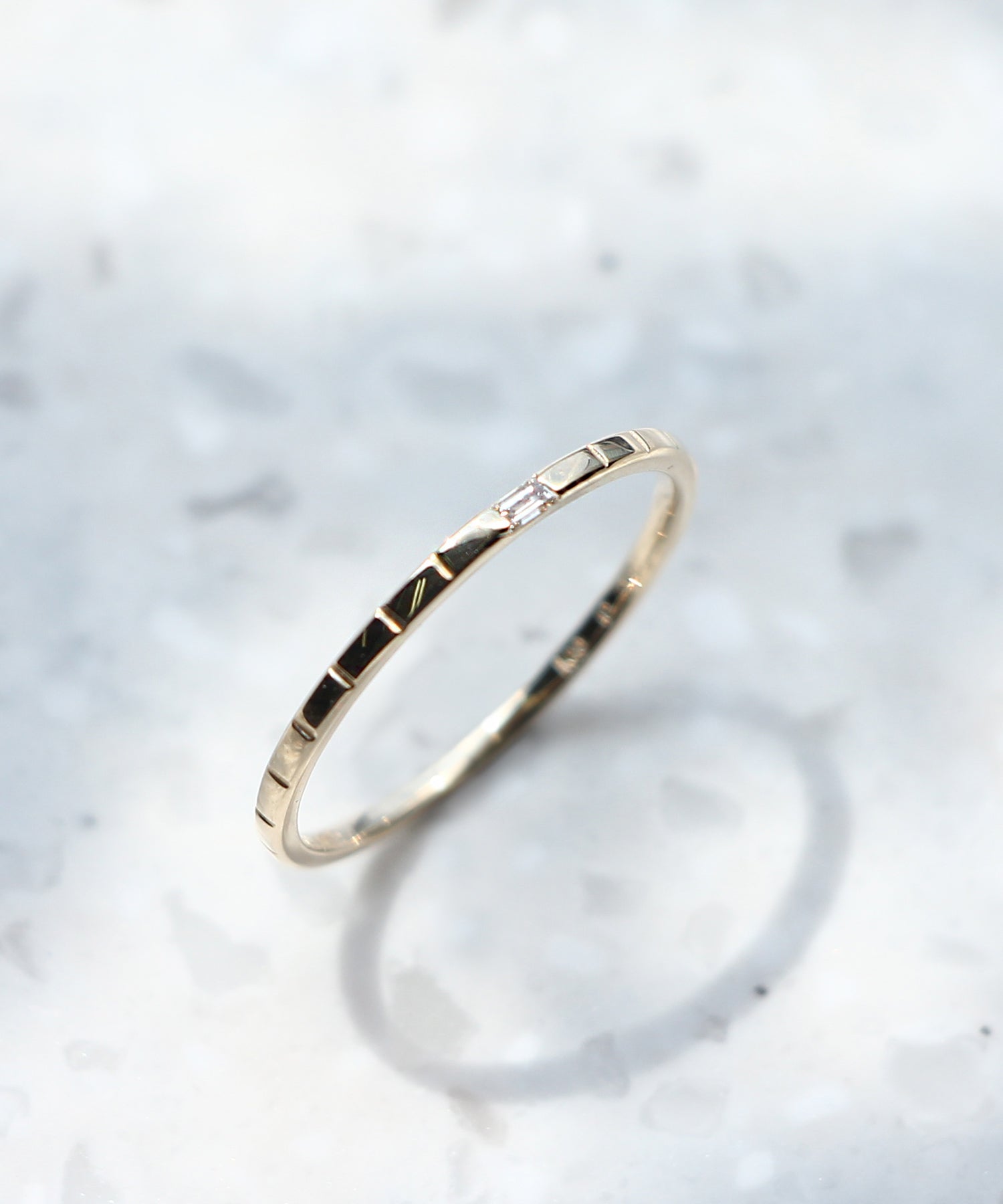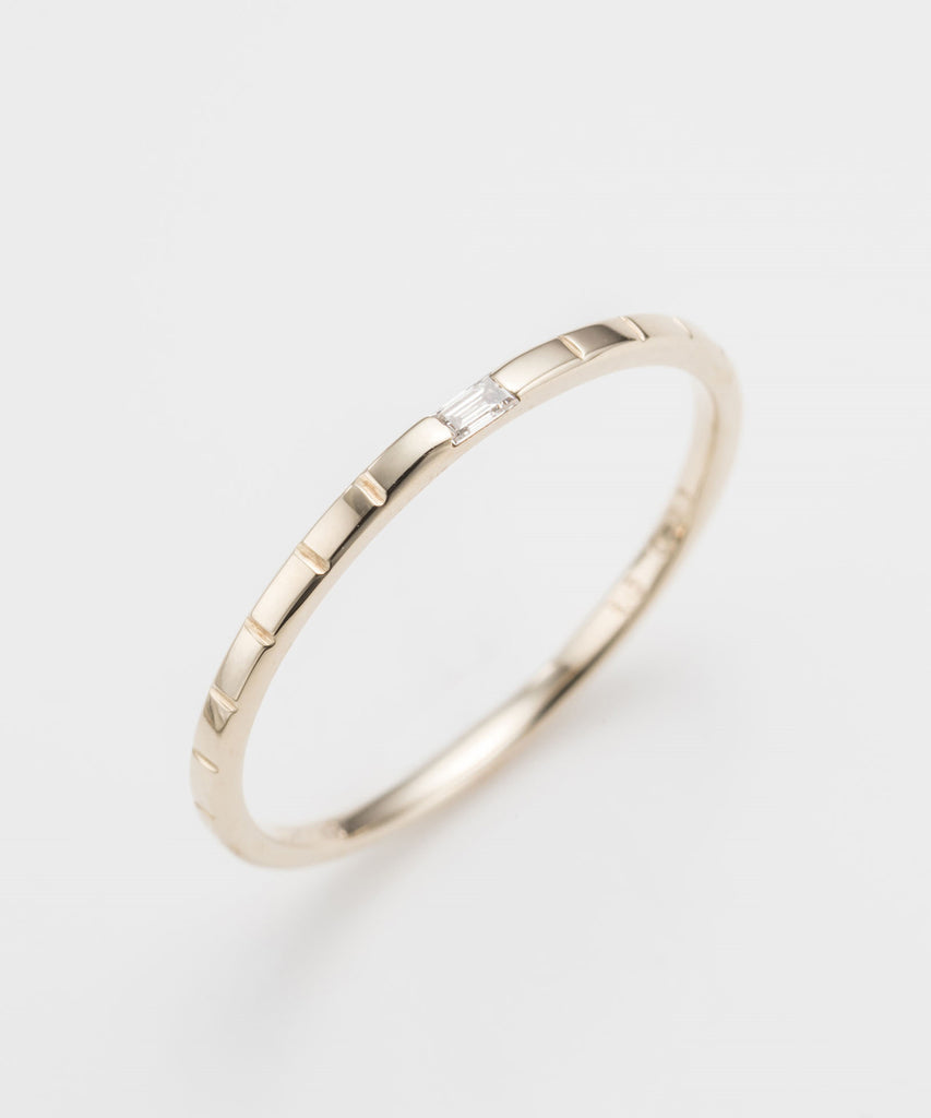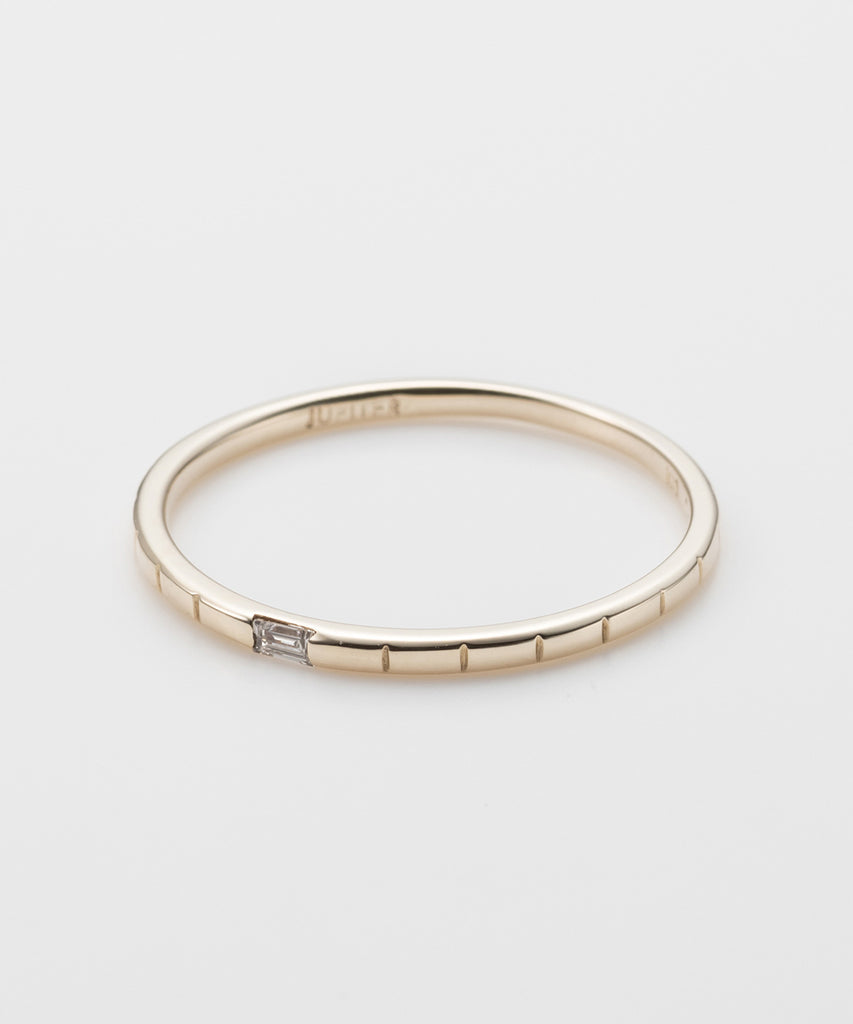 バケットカットを施した一粒のダイヤがシャープに輝くK10リング