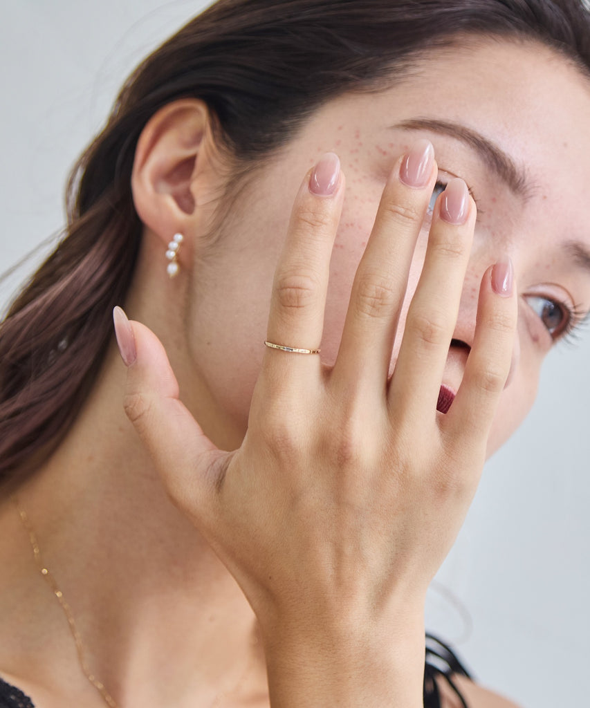 K10YGの肌馴染みの良いカラーとベーシックながら輝きを楽しめる洗練されたデザインが魅力です。