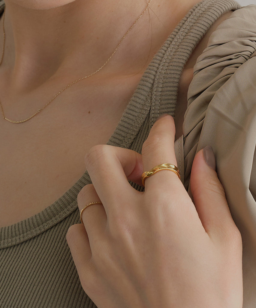一粒のダイヤモンドがさりげなく輝き、女性らしい手元を演出します。毎日身に着けていたくなるようなベーシックデザインは、日常使いに最適です。