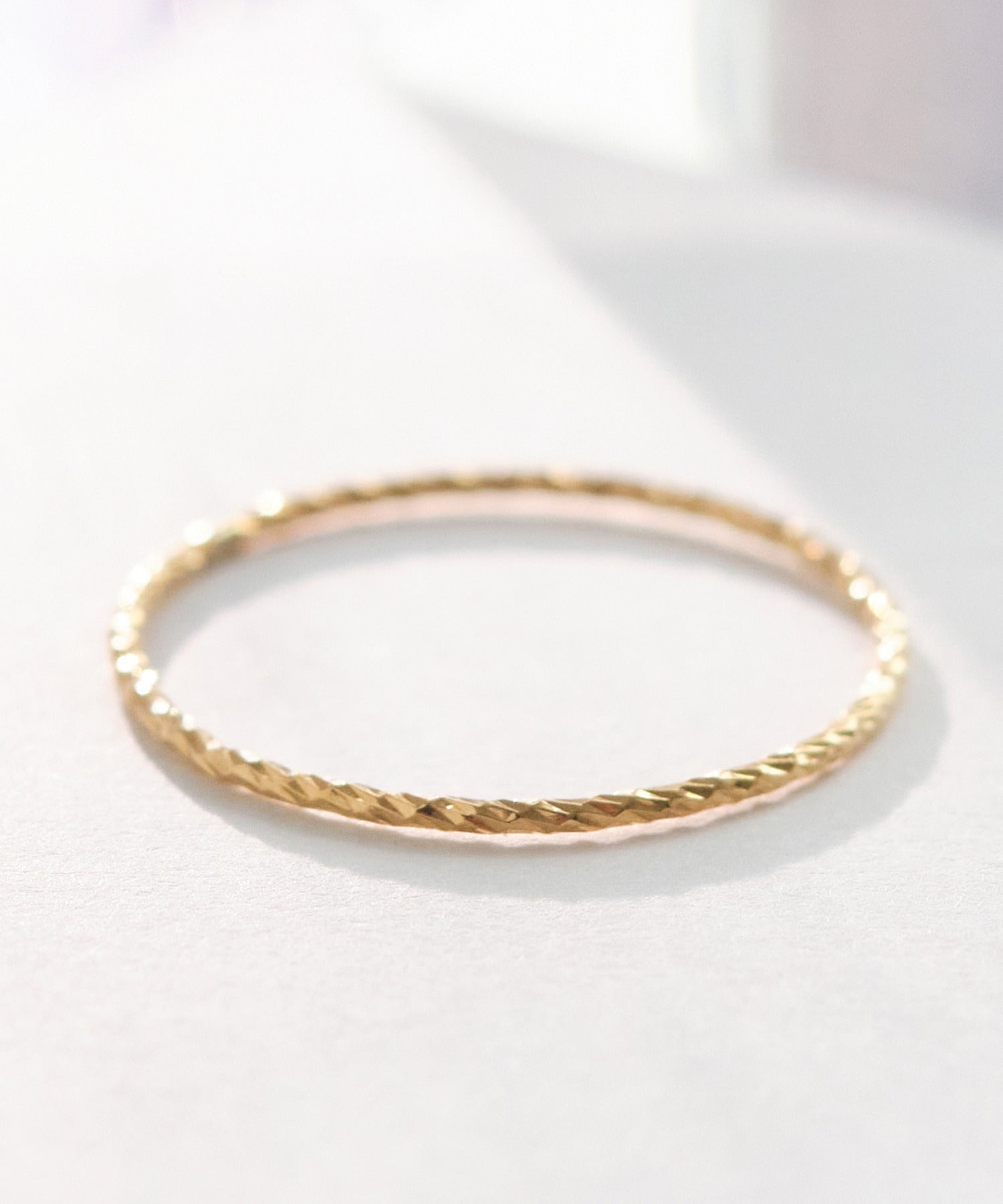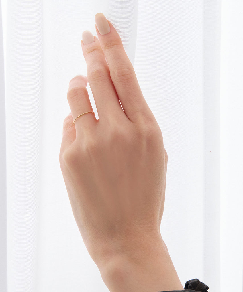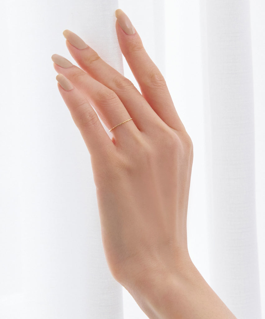 華奢なデザインと繊細な輝きが魅力のK18リングはお守りのようにいつも身に着けられる程よい存在感と指に馴染む華奢さがいつでも喜ばれます。