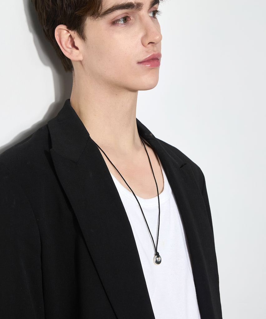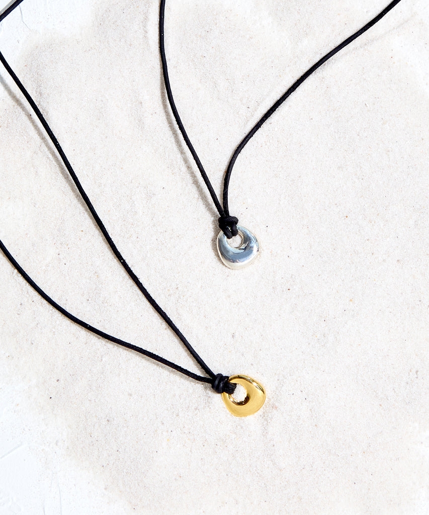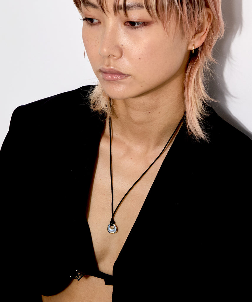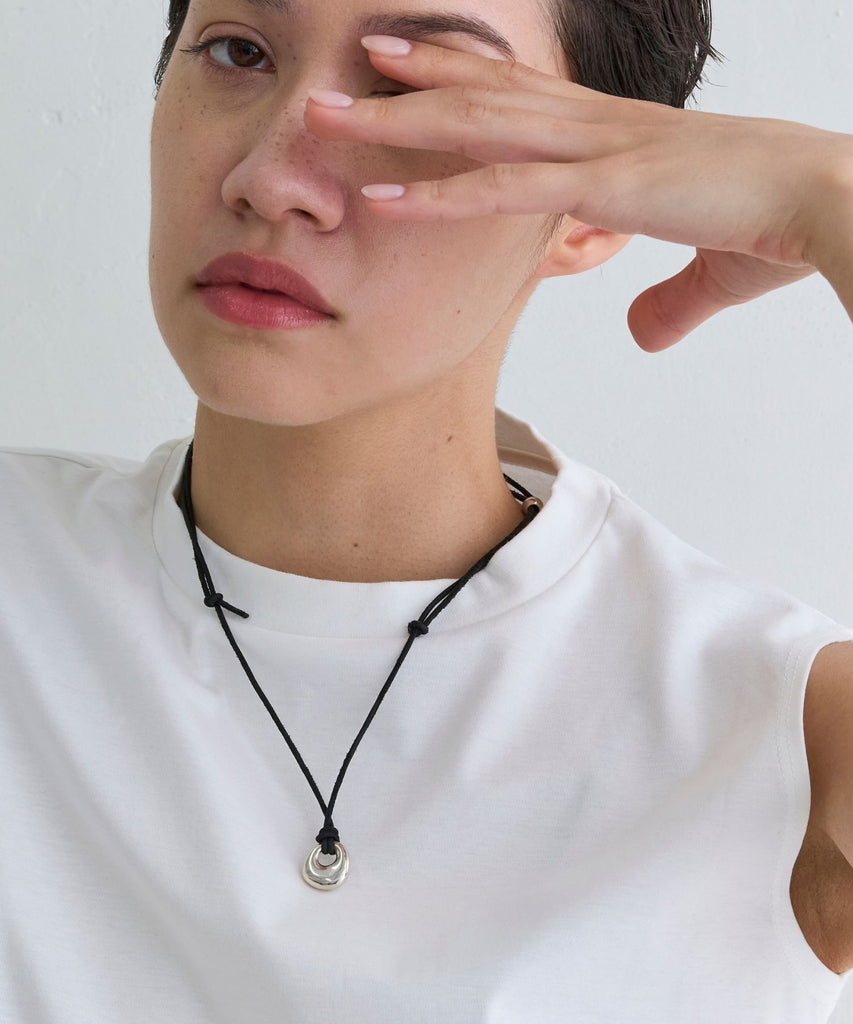 洞窟の奥深くに眠る光を彷彿とさせるメタルトップを使用したコードネックレス
