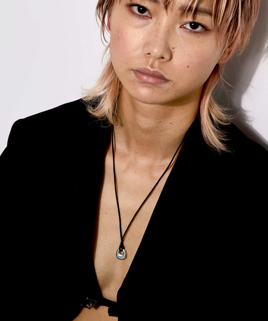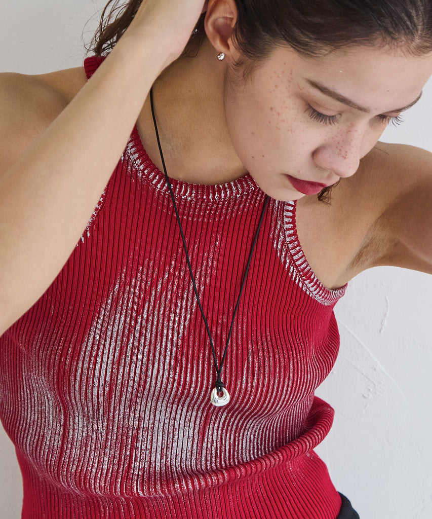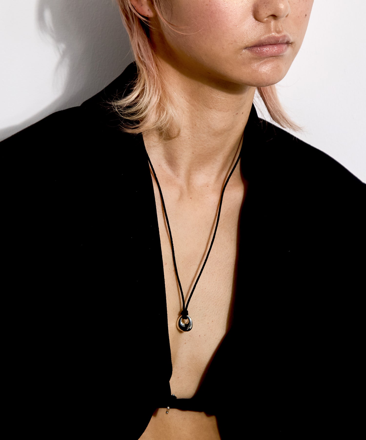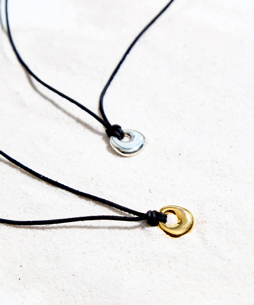洞窟の奥深くに眠る光を彷彿とさせるメタルトップを使用したコードネックレス