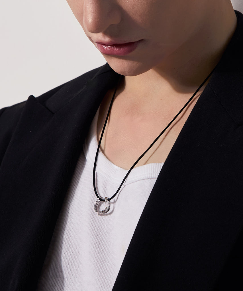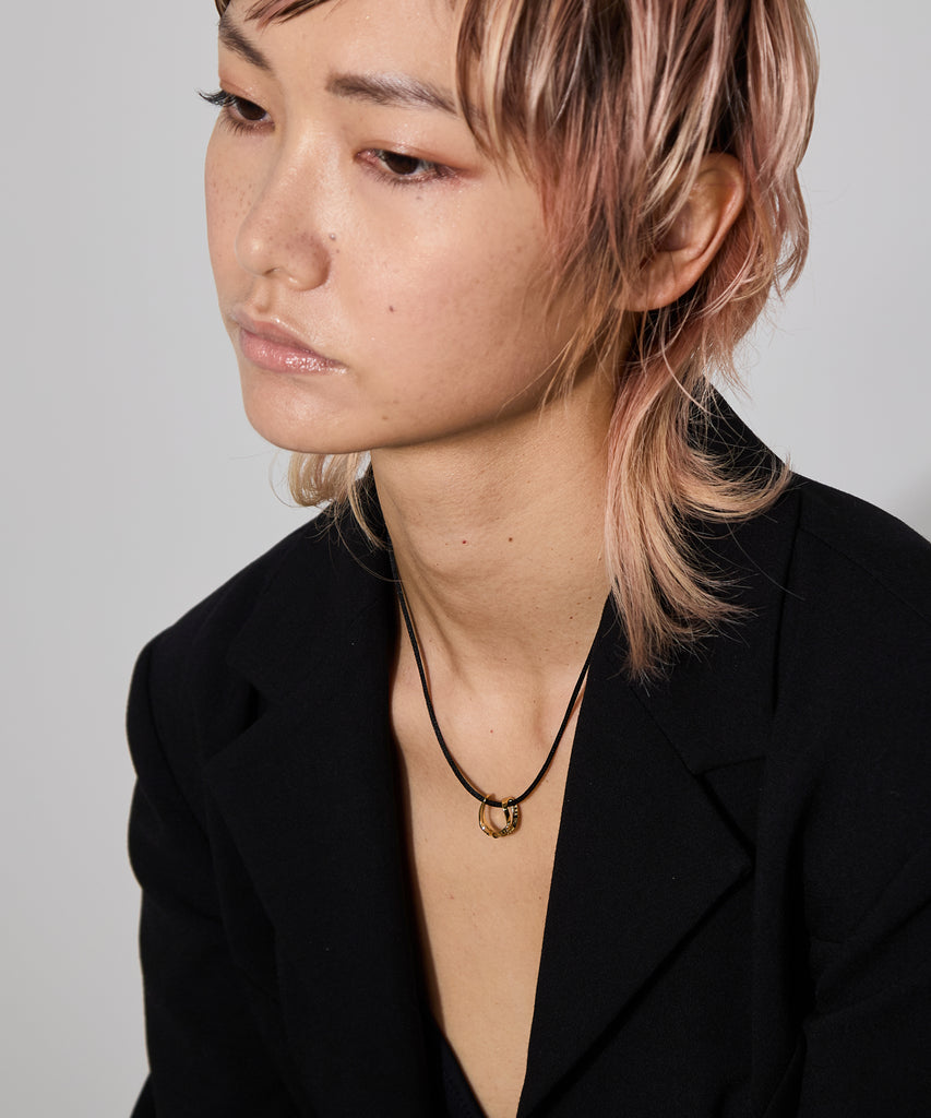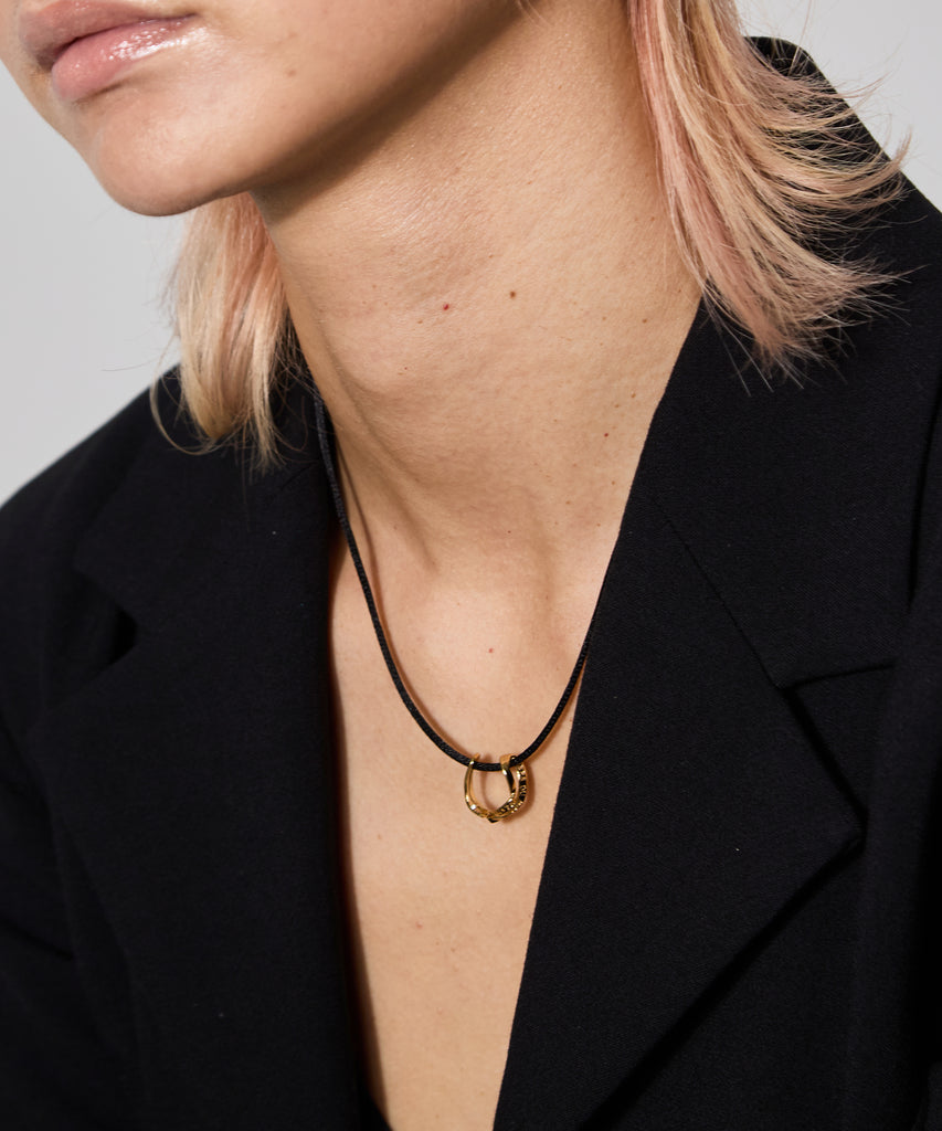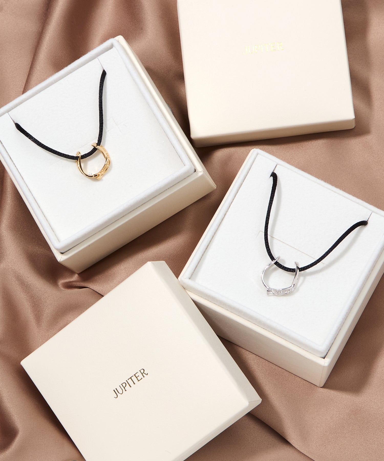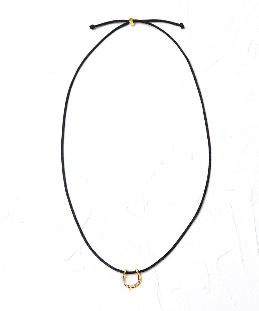 たゆたうリボンを馬蹄に見立ててデザインしたコードネックレス。