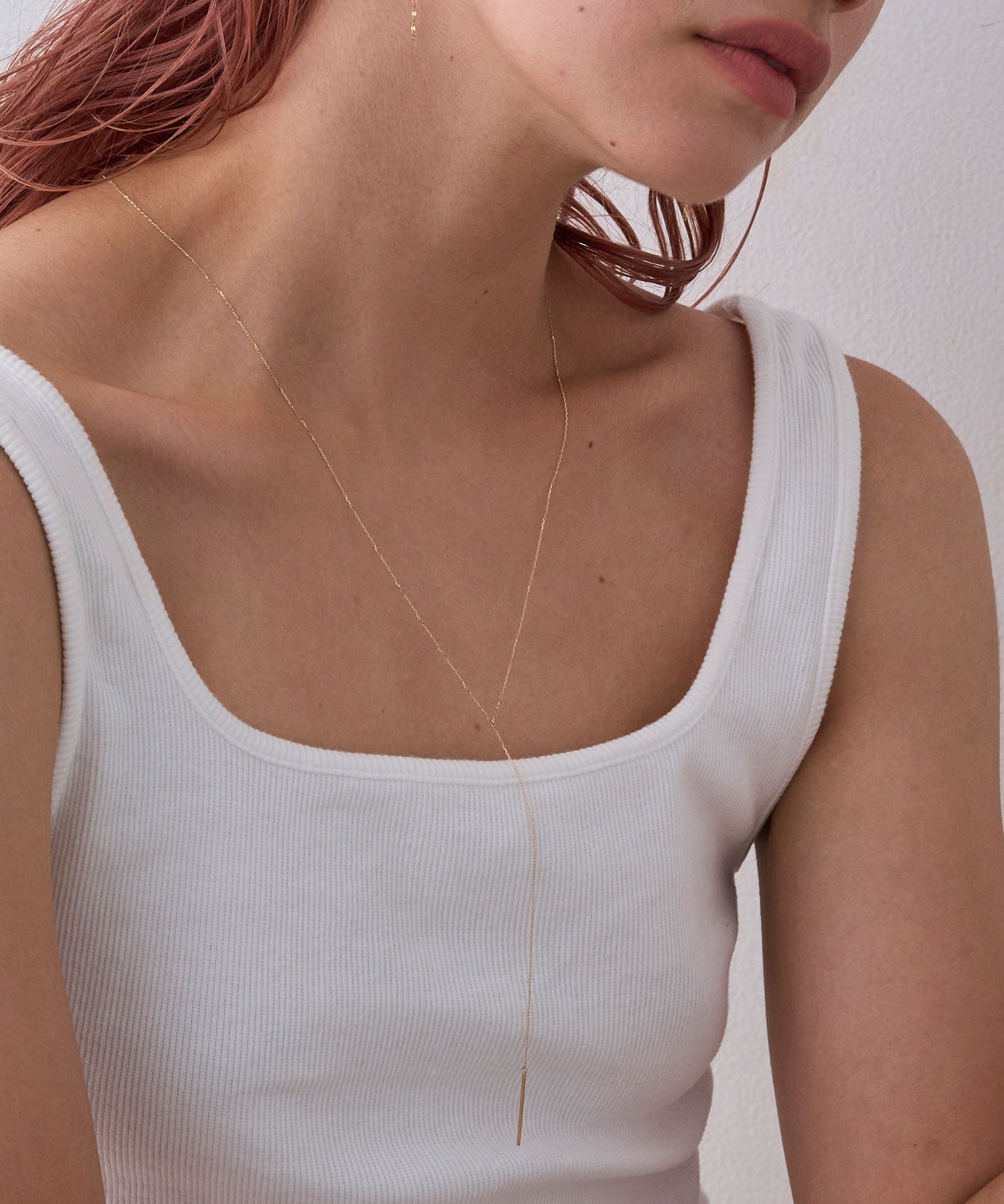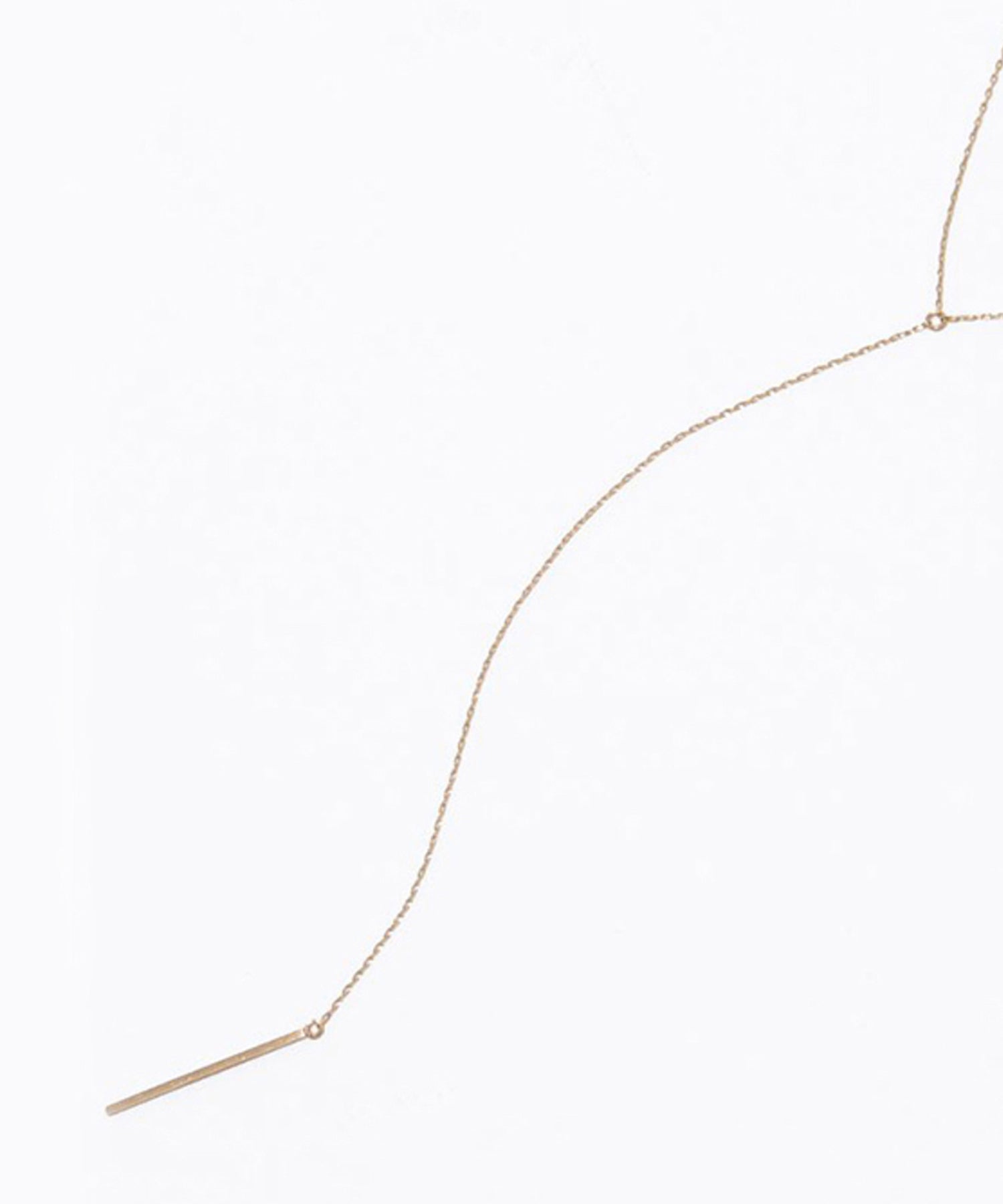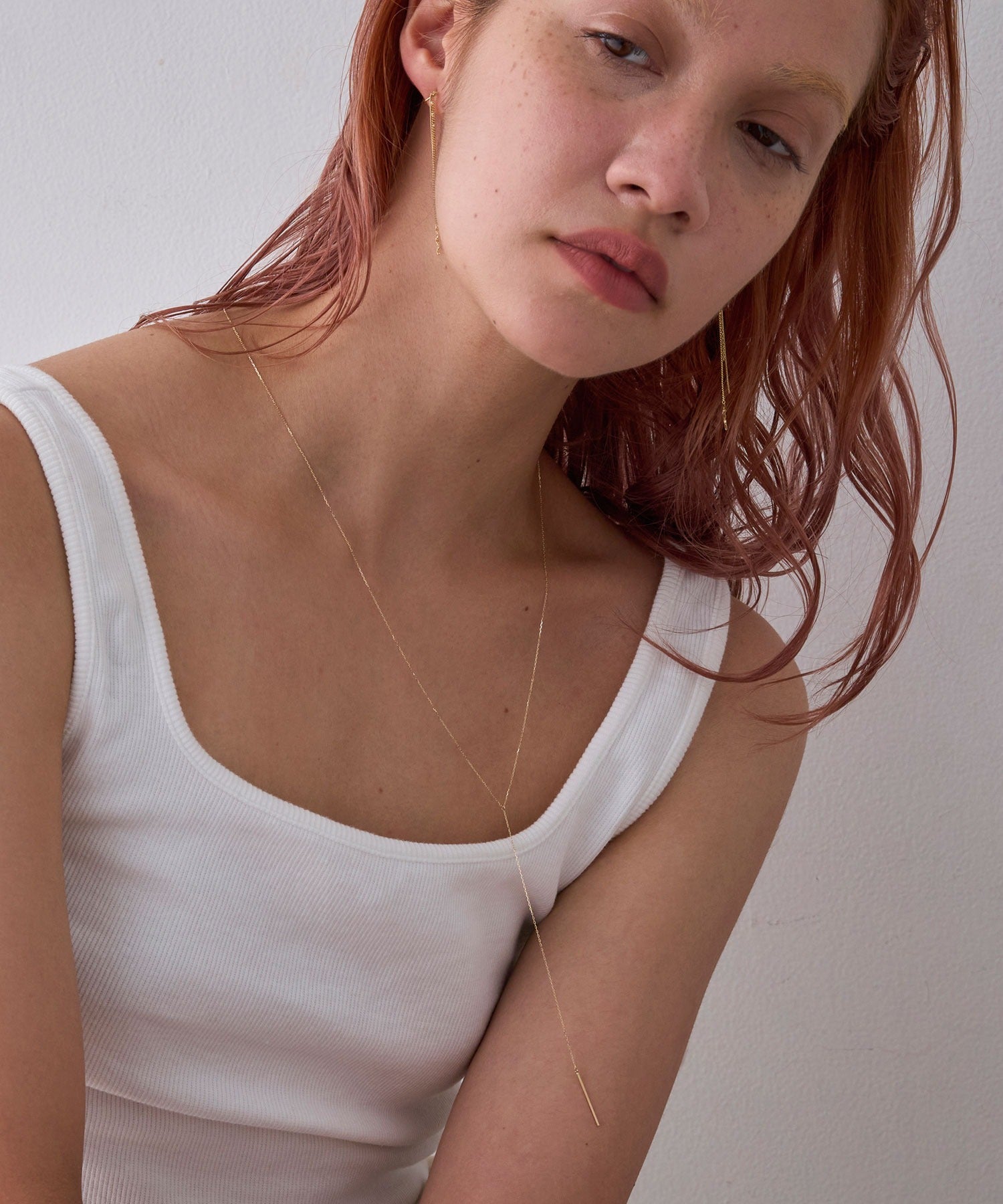 首もとをすっきりと綺麗に見せてくれる人気のロングタイプ。ゴールドのバーが揺れて輝き、モダンな表情を演出します。