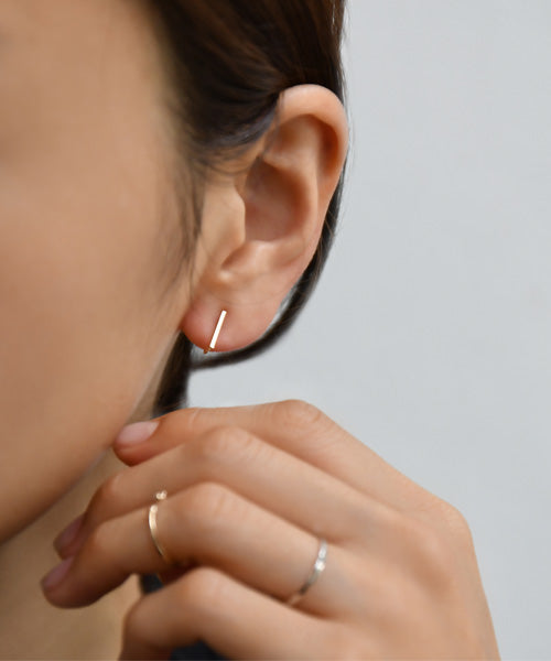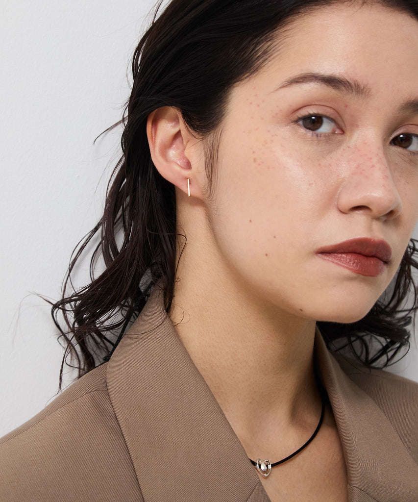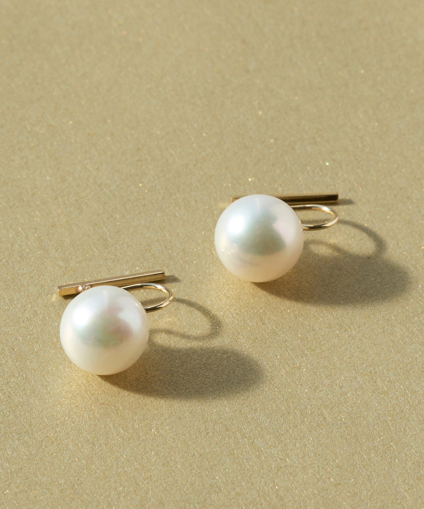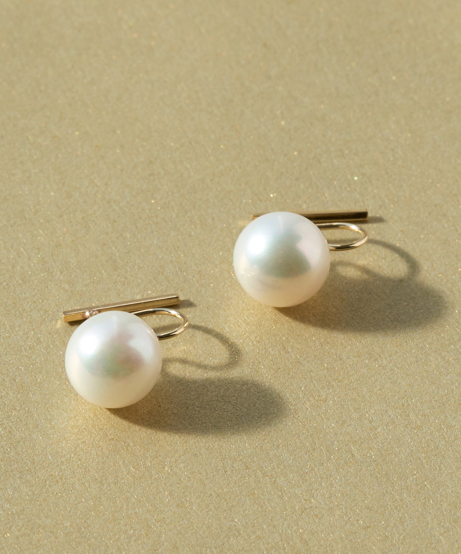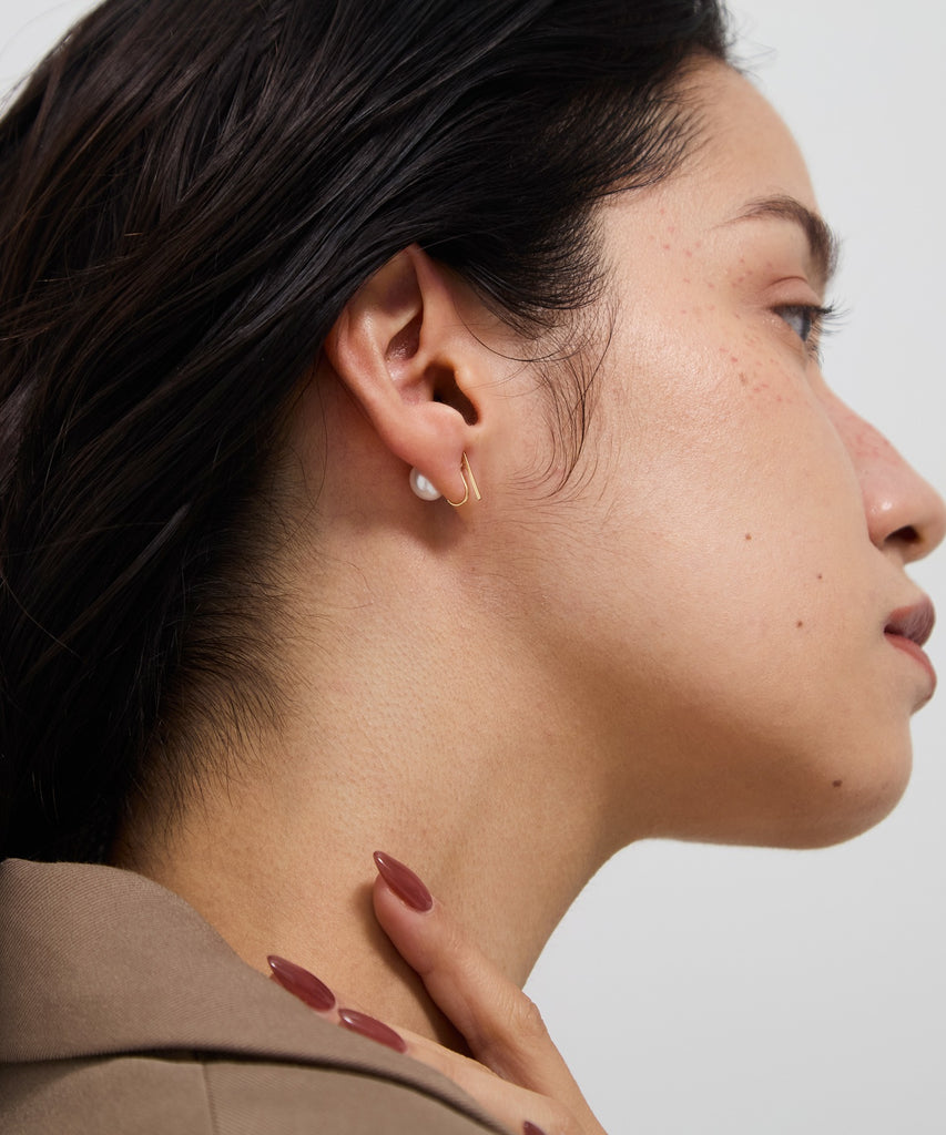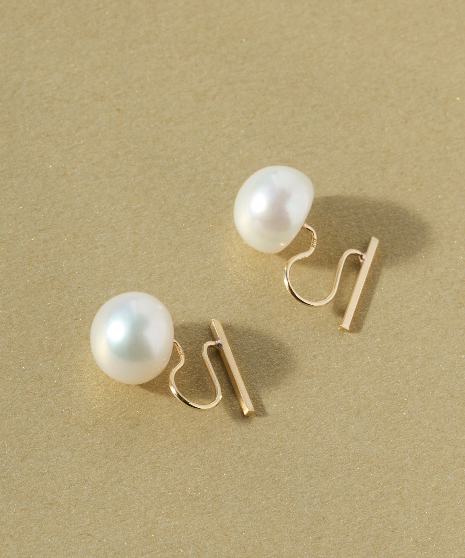 痛くなりにくいクリップ式イヤリングで耳たぶに挟むだけの簡単な着け方で、金具を目立たせずにイヤリングを楽しめます。大粒パールとバーモチーフでクリップ金具が隠れて、ピアスを着けているように見えます。