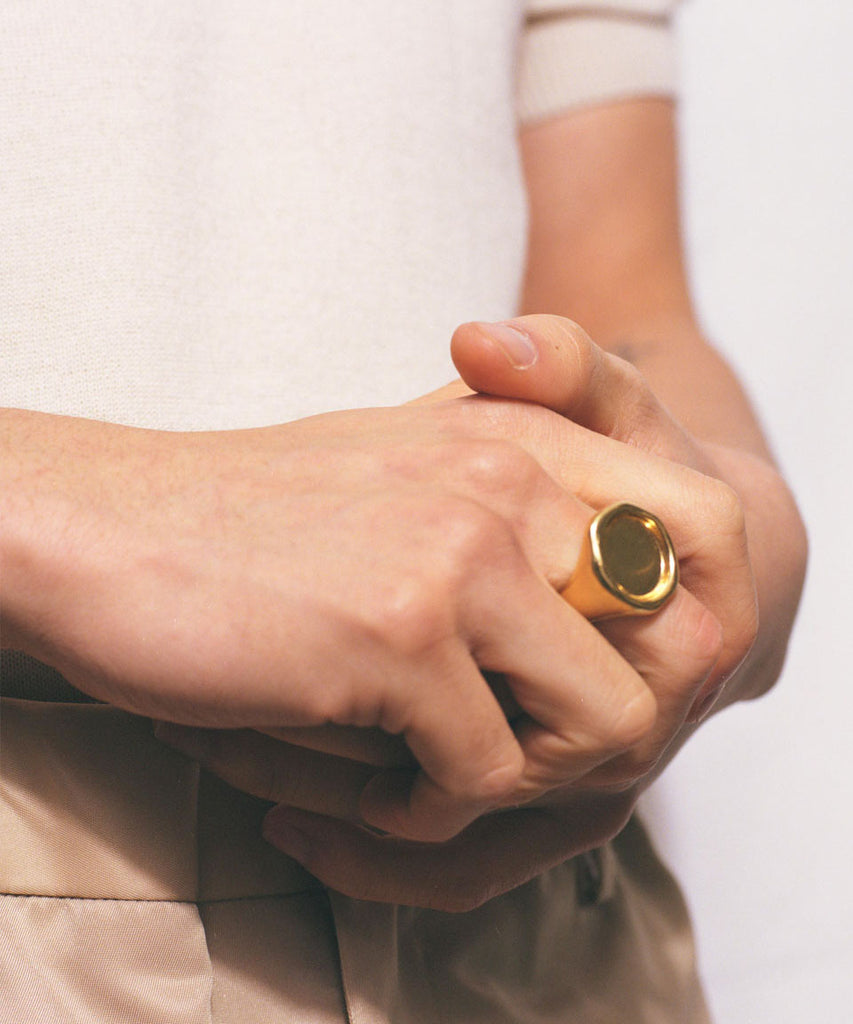 シンプルなカレッジリング。ボリューム感がありますが、スッキリ指になじみ、着け心地も良いデザインです。ユニセックスで着用いただけます。